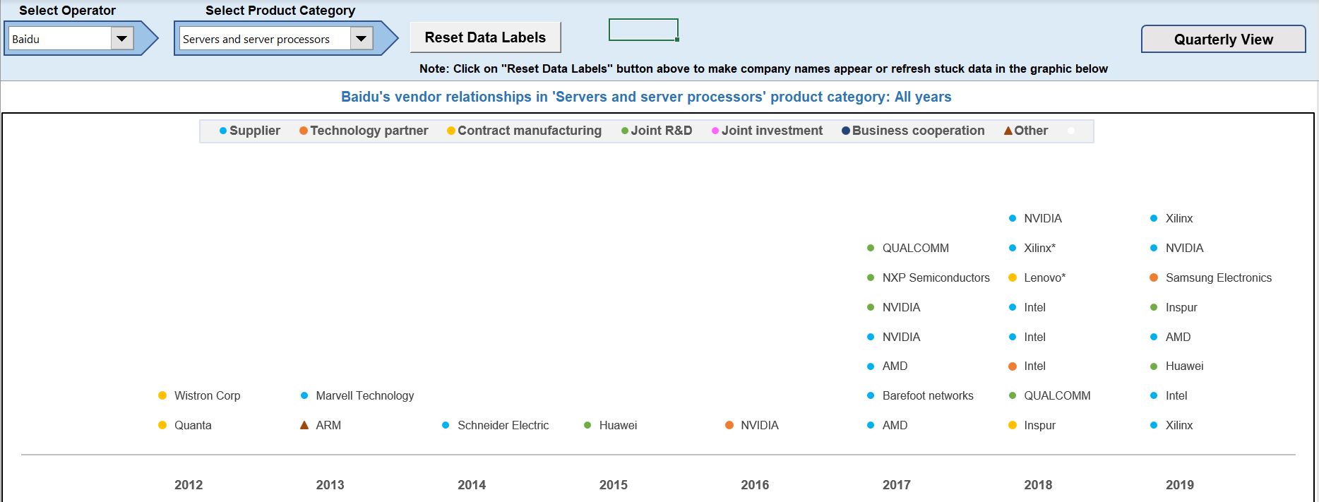 • Historical timeline of vendor relationships for a selected product category