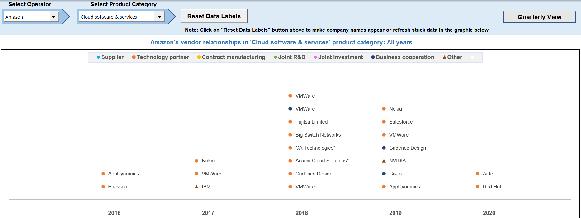 • Historical timeline of vendor relationships for a selected product category