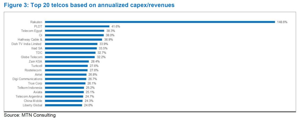 Figure 3: Top 20 telcos based on annualized capex/revenues