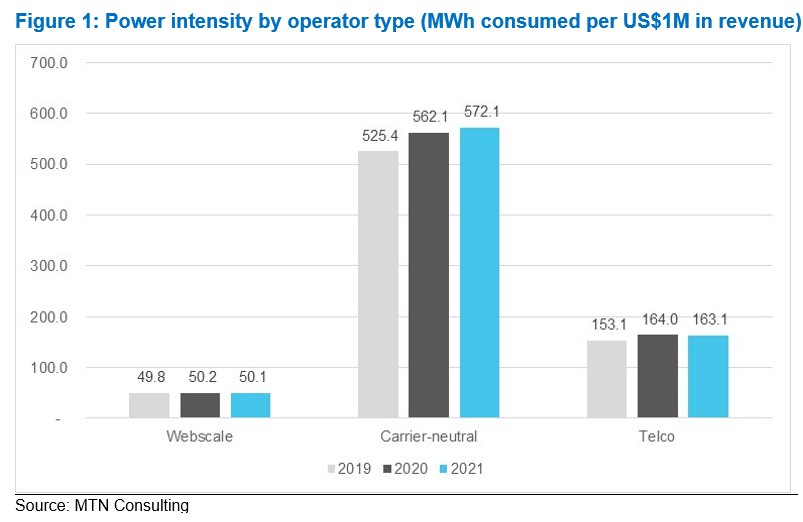 Figure 1: Power intensity by operator type (MWh consumed per US$1M in revenue)