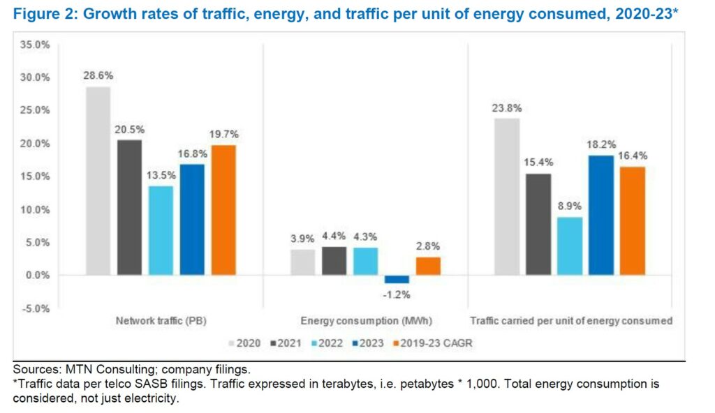 In late 2023, MTN Consulting published an initial review of the relationship between traffic growth and energy consumption in telco networks. That review included data for 16 telcos, and focused on 2020-22 data. This updated analysis extends coverage to 30 telcos, and adds two years (2019 and 2023) of data. Our analysis now addresses the 2019-23 timeframe.