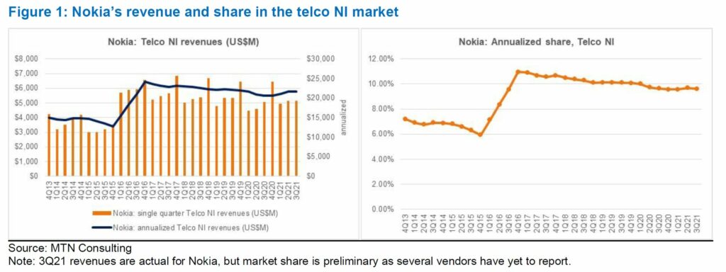 Figure 1: Nokia’s revenue and share in the telco NI market