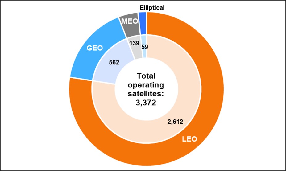Figure 1: Total active satellites, by orbit type – 2020 – 5