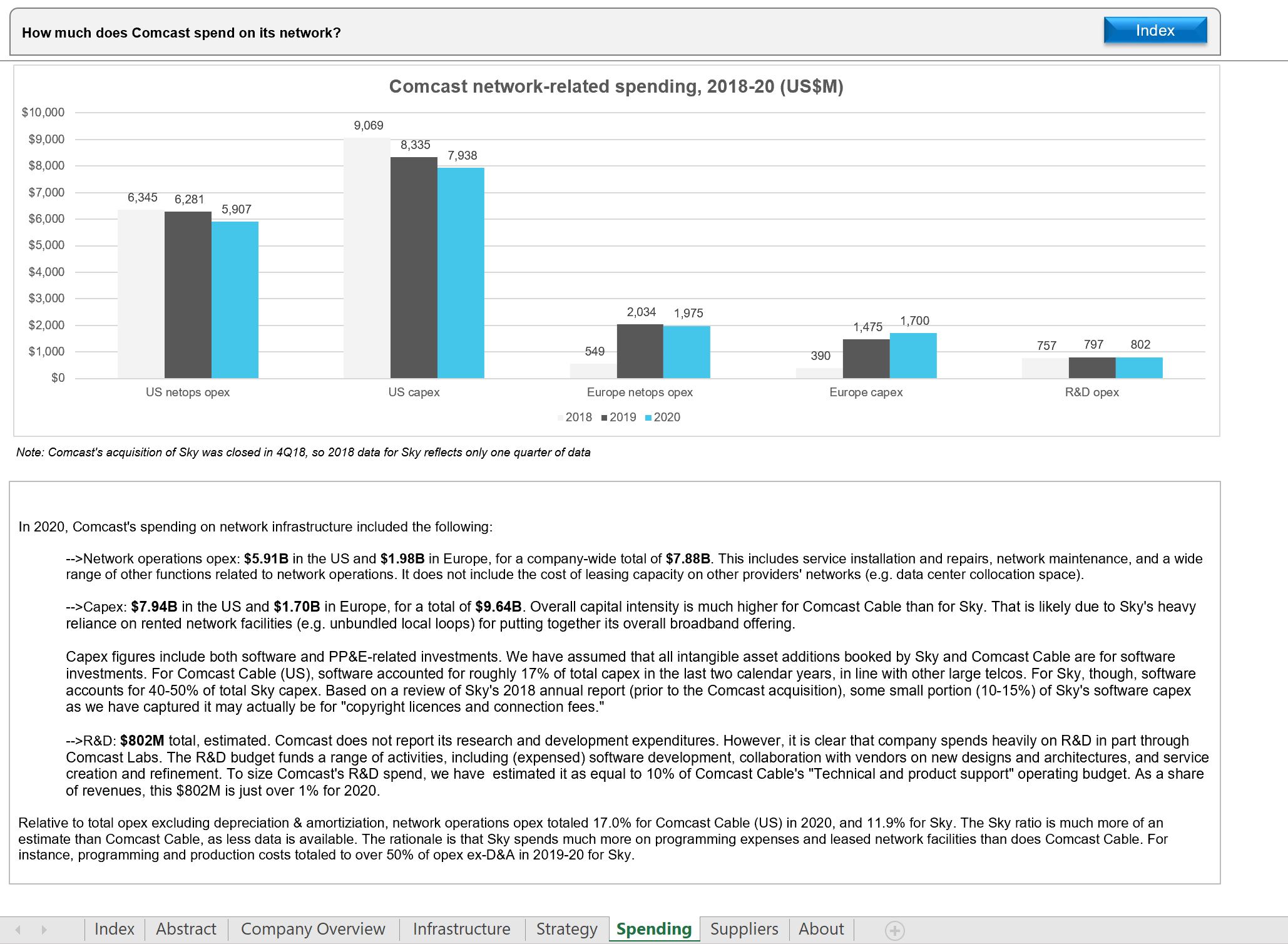 - Comcast network-related spending, 2018-20 (US$M)