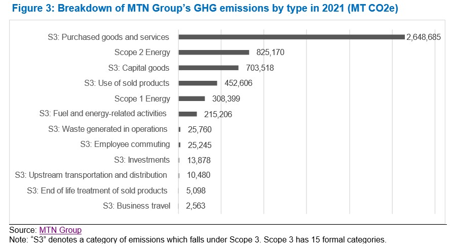 Figure 3: Breakdown of MTN Group’s GHG emissions by type in 2021 (MT CO2e)