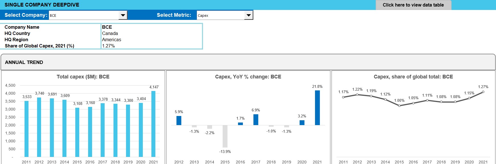 - Spending (opex, labor costs, capex): annual and quarterly trend