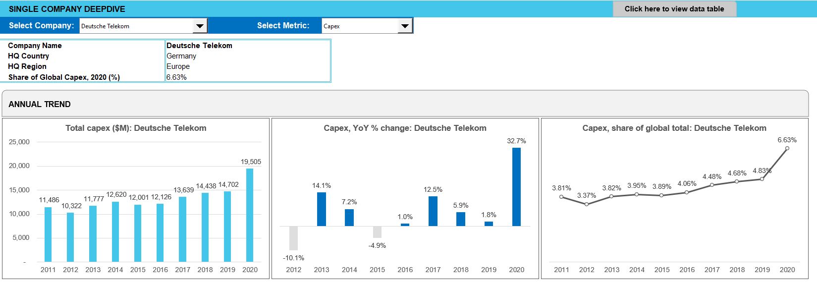 This market review provides a comprehensive assessment of the global telecommunications industry based on financial results through December 2020 (4Q20). The report tracks revenue, capex and employee for 138 individual telecommunications network operators (TNOs). For a sub-group of 50 large TNOs, the report also assesses labor cost, opex and operating profit trends. The report also covers annual data for other financial metrics such as debt, cash & short term investments, M&A spend and cash flow from operations for the TNO-50. Our coverage timeframe spans 1Q11-4Q20 (40 quarters). The report’s format is Excel.