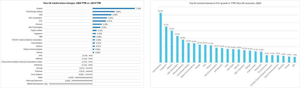 - Top 25 vendors based on 3Q20 YoY revenue growth rate in Telco NI