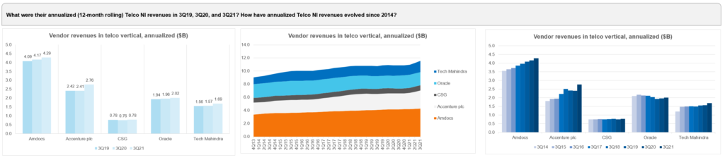 - Top 25 vendors in Telco NI Services: Annualized 3Q21 Revenues (US$B)