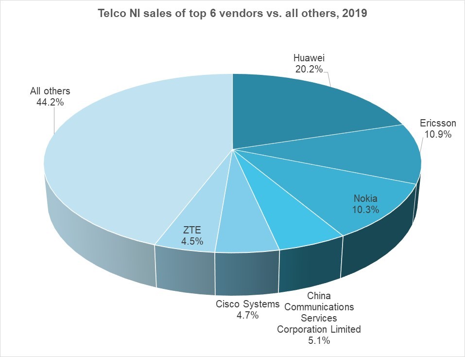 - Telco NI sales of top 6 vendors vs. all others, 2019