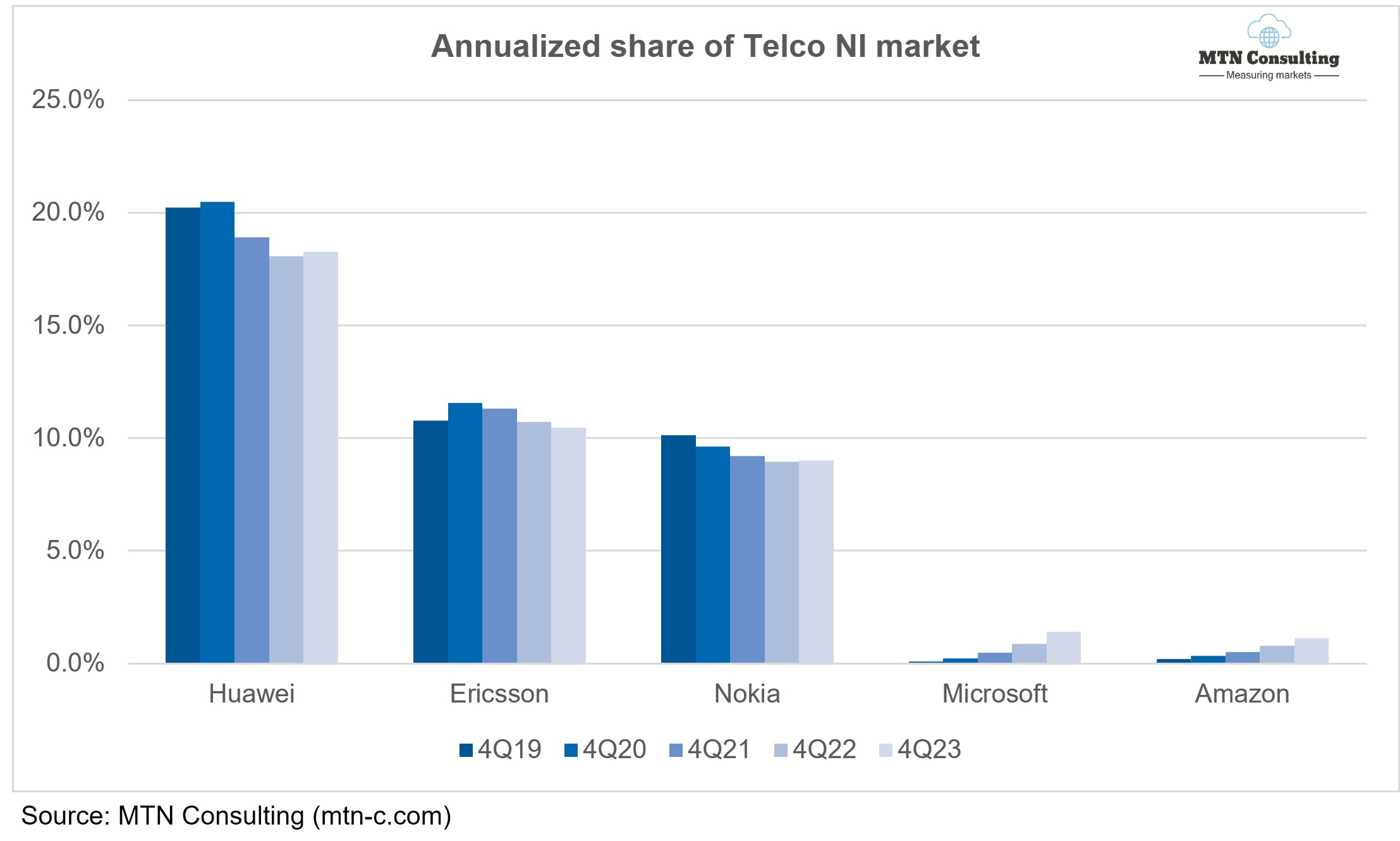 - YoY growth in annualized Telco NI market, with and without Huawei figures