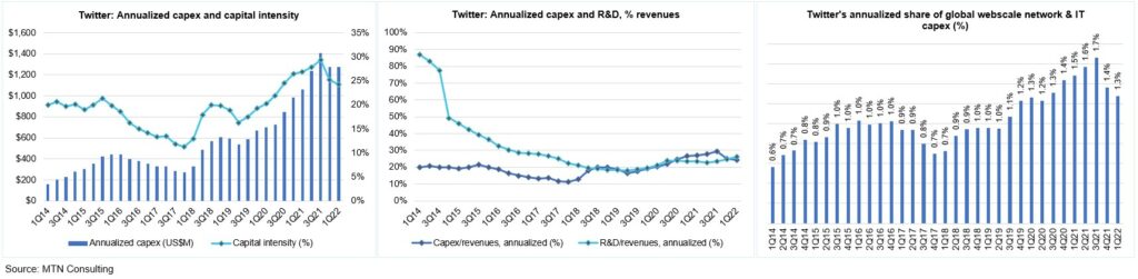 - Twitter: guidance from 4Q21 call was for flat capex in 2022 but a decline seems likely given distractions from the Elon Musk-driven acquisition