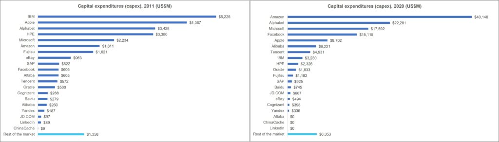 Annualized capex climbs to $153B in 2Q21; data center landgrab continues