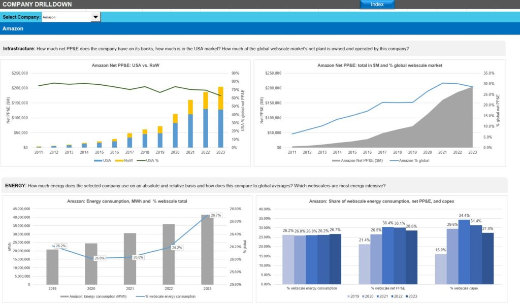 - Share of webscale energy consumption, net PP&E, and capex (by company)