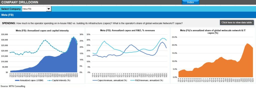 - Network & IT capex as share of revenues, 3Q23 annualized