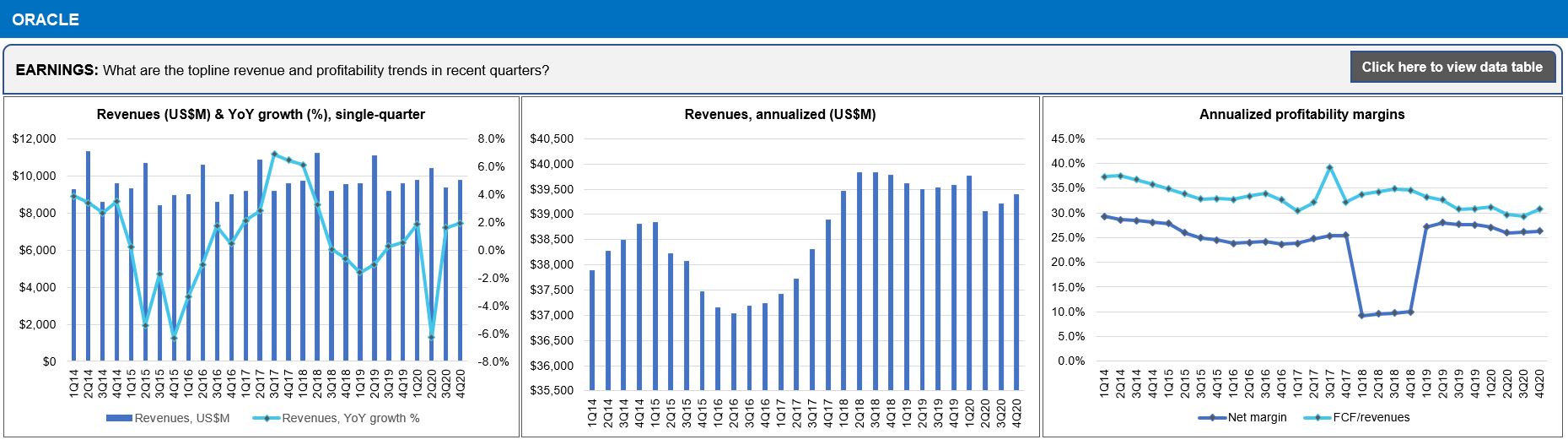 - Profitability (Net Profit; Cash from operations; Free cash flow): annual, single-quarter, and annualized (US$M)