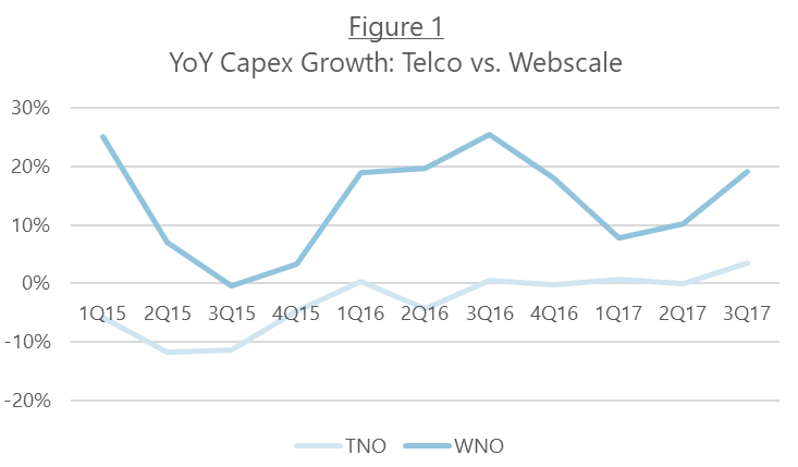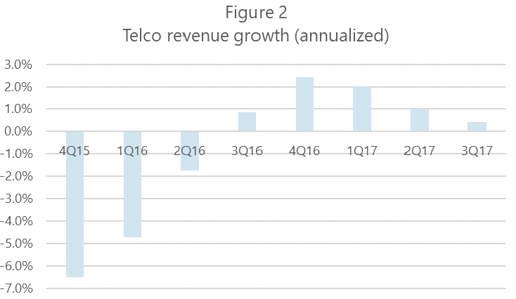 This imbalance is reflected in trade data. Over the 5-year 2013-2017 period, imports of telecom equipment were an astounding $58B more than exports in India. Imports have been 10x the value of exports, or higher, in the last three years. (Figure 1).