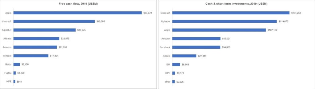 Figure 1: Free cash flow and cash & short term investments at year-end in the webscale sector, 2019